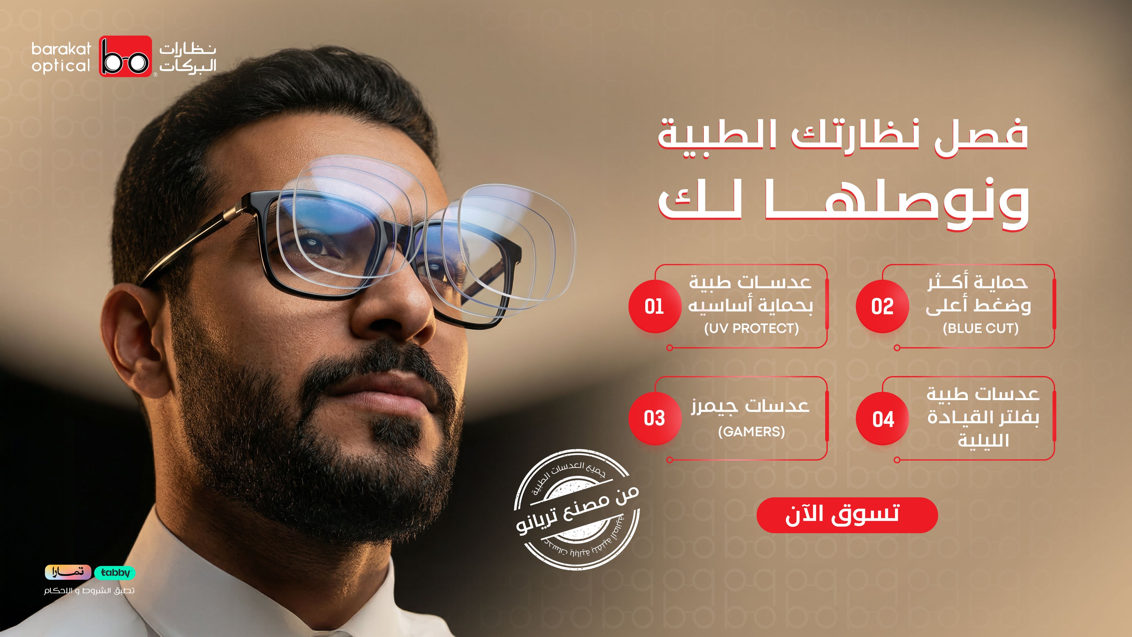 خدمتكم رائعة وجودة النظارات ممتازة، استلمت الطلب بسرعة والتغليف كان أنيق جدًا