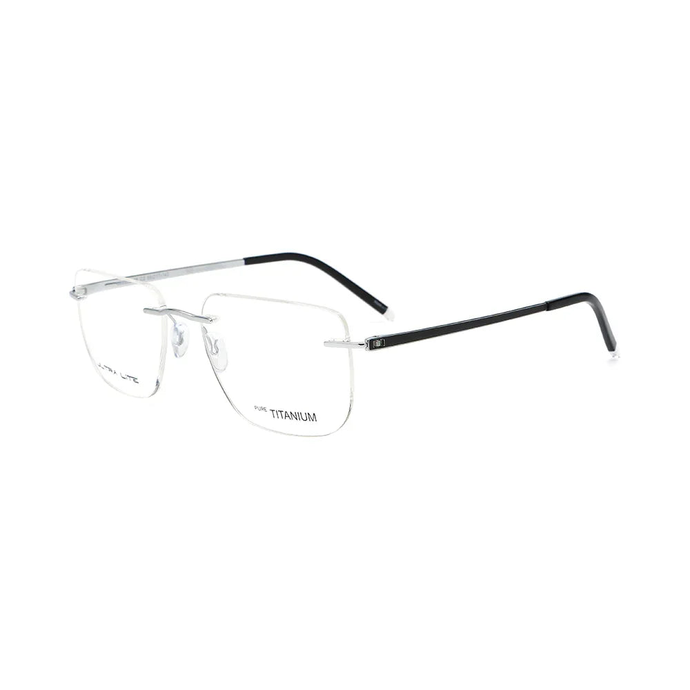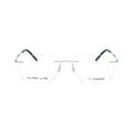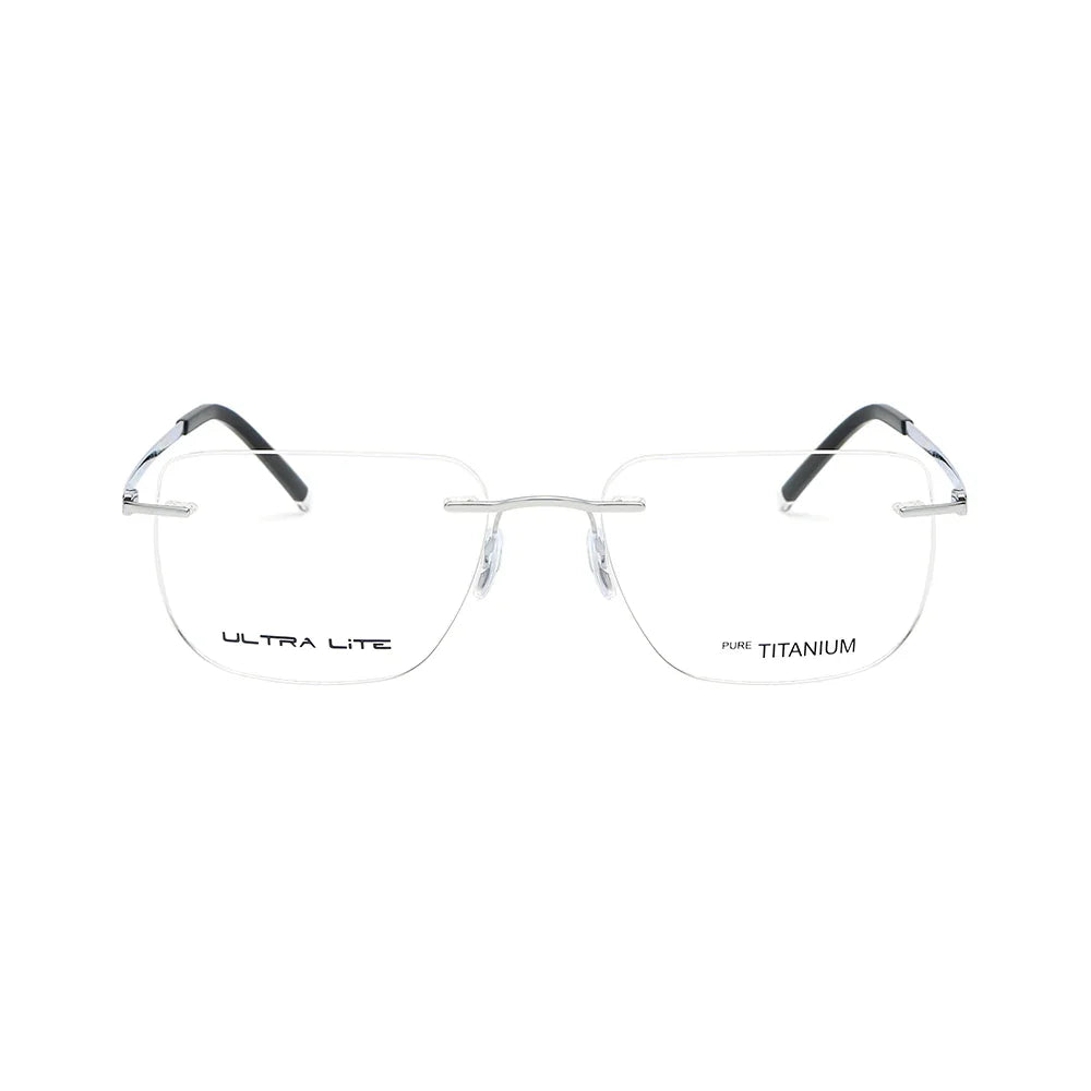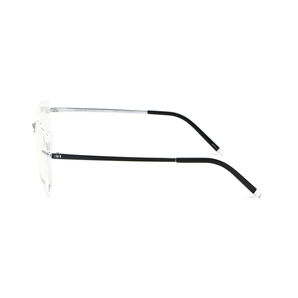 Uni Six Rimless eyeglasses prevent moisture buildup; the slim silver arms ensure airflow around the temple area for greater comfort.